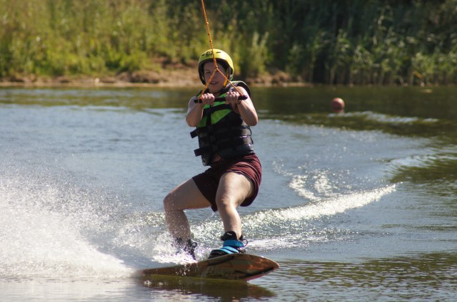 So, once we’d confirmed that we could get on the water and everyone had been fed and watered after yoga, we kicked things off! Everyone went and got used to the cable and then started trying new things. Everyone was riding really well in their first sets on the water!