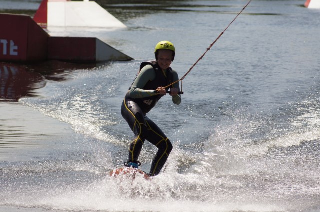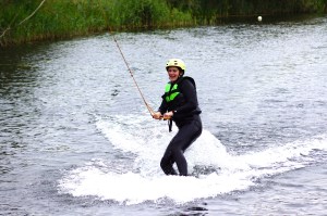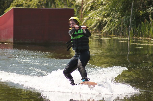 So, once we’d confirmed that we could get on the water and everyone had been fed and watered after yoga, we kicked things off!  Everyone went and got used to the cable and then started trying new things.  Everyone was riding really well in their first sets on the water!