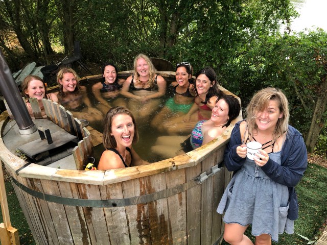 Once the wakeboarding part of the day was wrapped, the groups headed to the hot tub where they were waiting for their Coach, Lex Balladon, to join in with a welcomed prosecco toast!  What a great way to end a wakeboard session.